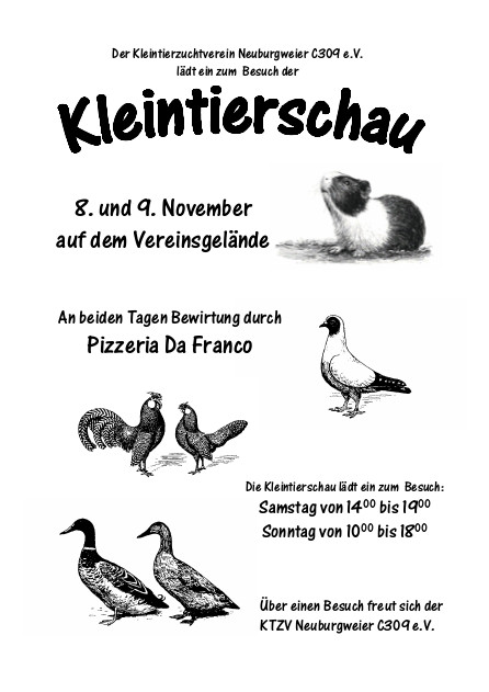 Kleintierschau am 8. und 9November auf dem Vereinsgelände